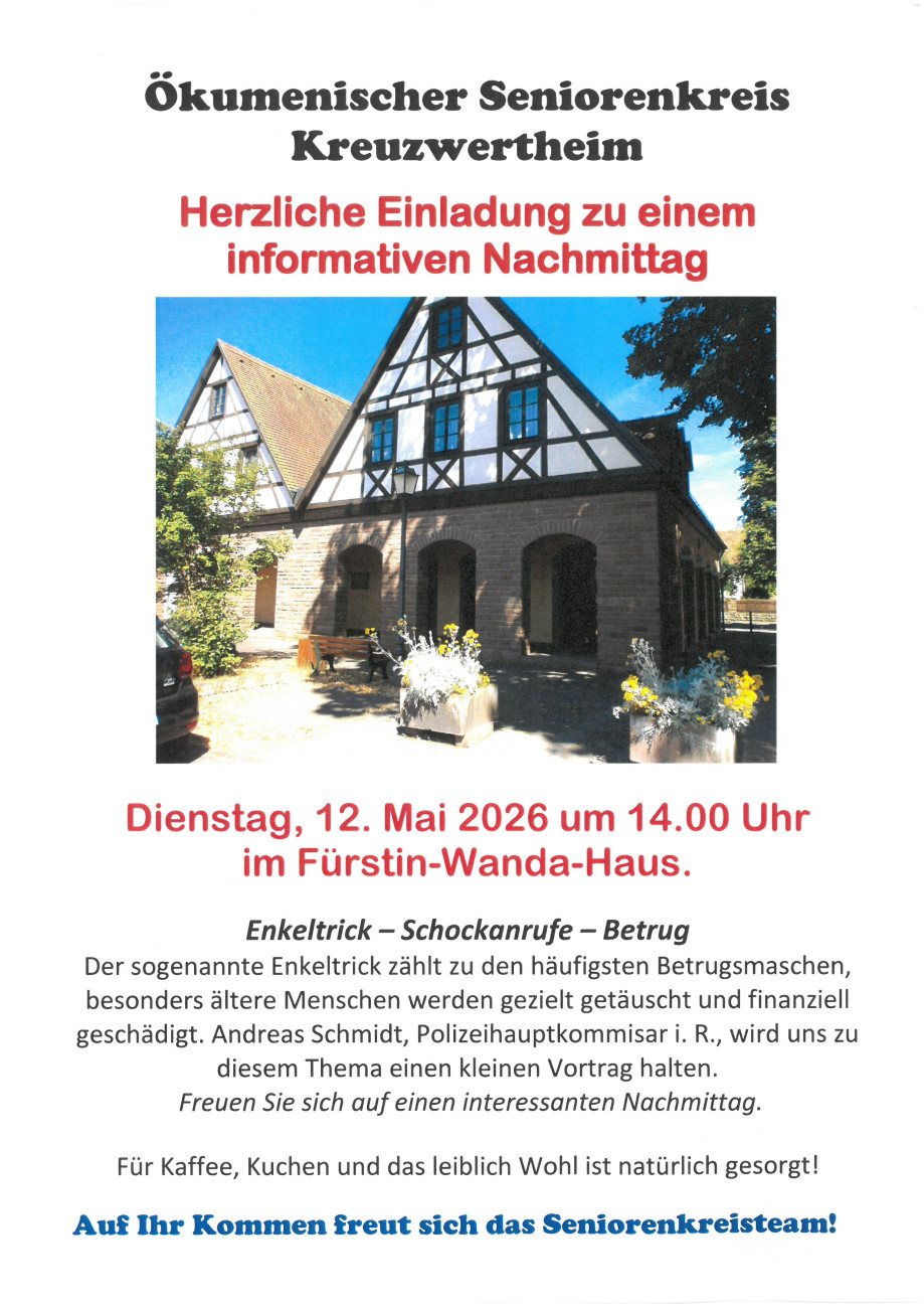 Ökumenischer Seniorenkreis am 12. Mai 2026 im Fürstin-Wanda-Haus